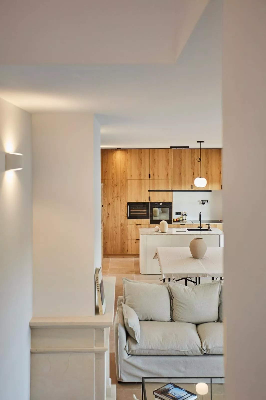 La climatisation gainable Mitsubishi assure un confort thermique discret dans l'ensemble de la propriété, tandis que l'éclairage architectural met en valeur les volumes de chaque pièce.