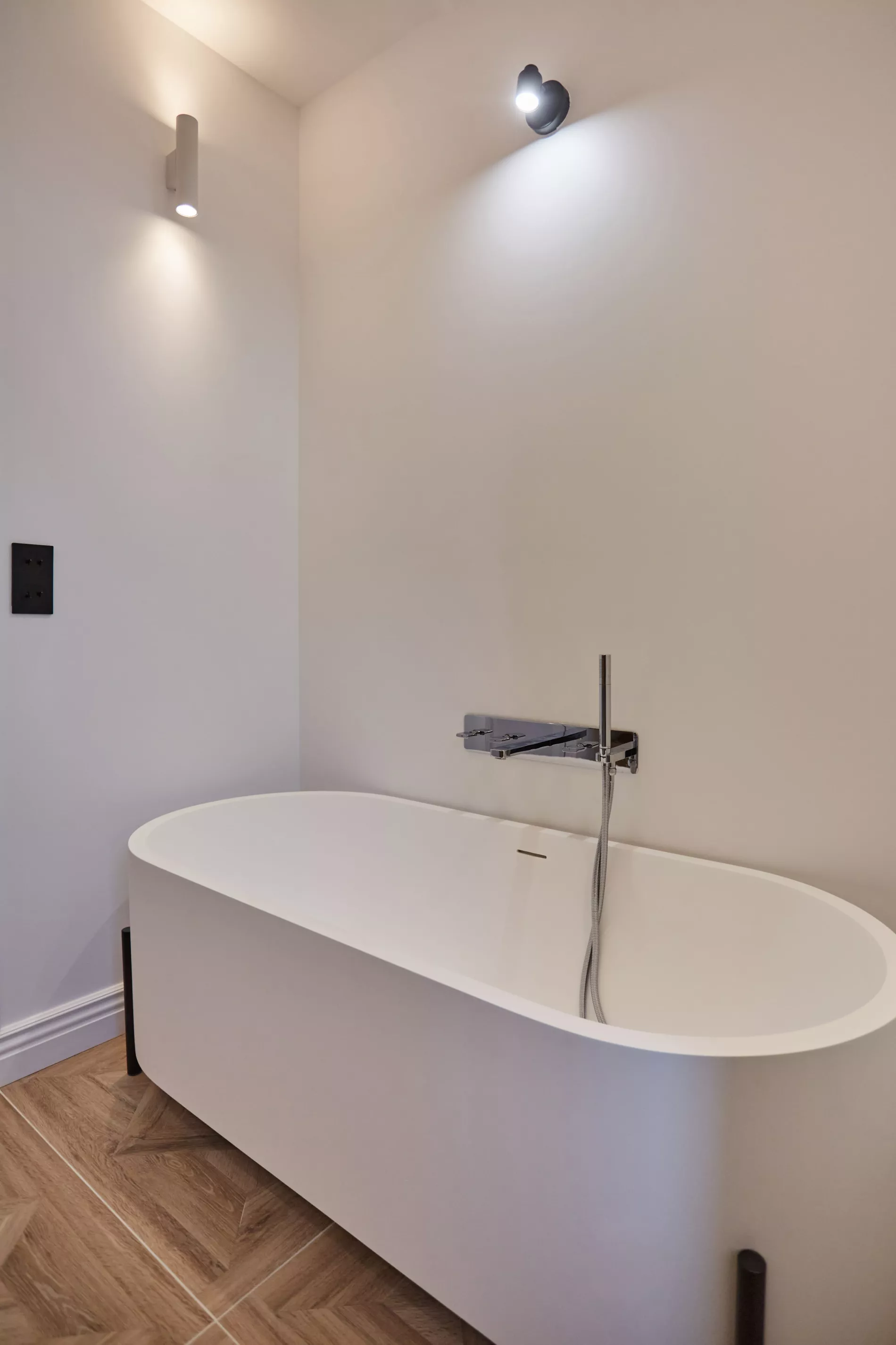 Nous avons créé 4 salles de bain complètes avec douches à l'italienne, baignoire îlot, meubles vasque sur mesure carrelés, robinetterie encastrée Grohe et WC suspendus Geberit. Chaque salle de bain a été pensée pour un rendu unique et personnalisé.
